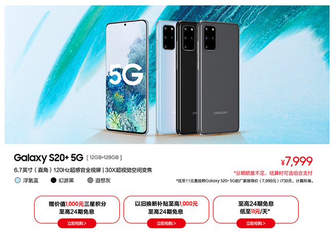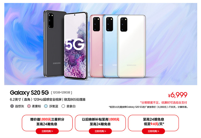 入門級(jí)旗艦Galaxy S20 5G,24期免息+贈(zèng)專屬好禮二選一