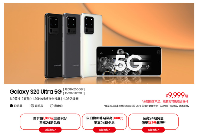 登峰造極的三星Galaxy S20 Ultra 5G,免息分期+好禮三選一