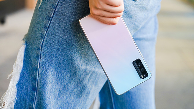 華為暢享20 Pro櫻雪晴空背面選用藍(lán)粉撞色的潮炫設(shè)計(jì),兩者皆為充滿自信與年輕感的色彩。通過先進(jìn)的多層微米玻璃工藝加以融合之后,手機(jī)背部通透性以及光影的折射效果均恰到好處,真機(jī)給人的感覺是活力四射又頗具質(zhì)感。相較之前華為暢享20 Pro已有的三款配色,櫻雪晴空明顯更有女人緣,魅力指數(shù)得以加分。