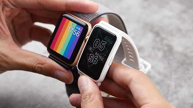 Apple Watch無疑是方形手表的代表,剛好9月16日也出了新款。與之相比,榮耀手表ES整體比例修長許多,辨識度頗高。我們評測的白色版采用增強(qiáng)型聚合纖維用料,質(zhì)感不俗且比較百搭,連同表帶僅34克的輕盈機(jī)身,也就一只運(yùn)動護(hù)腕的重量,堪稱極致。