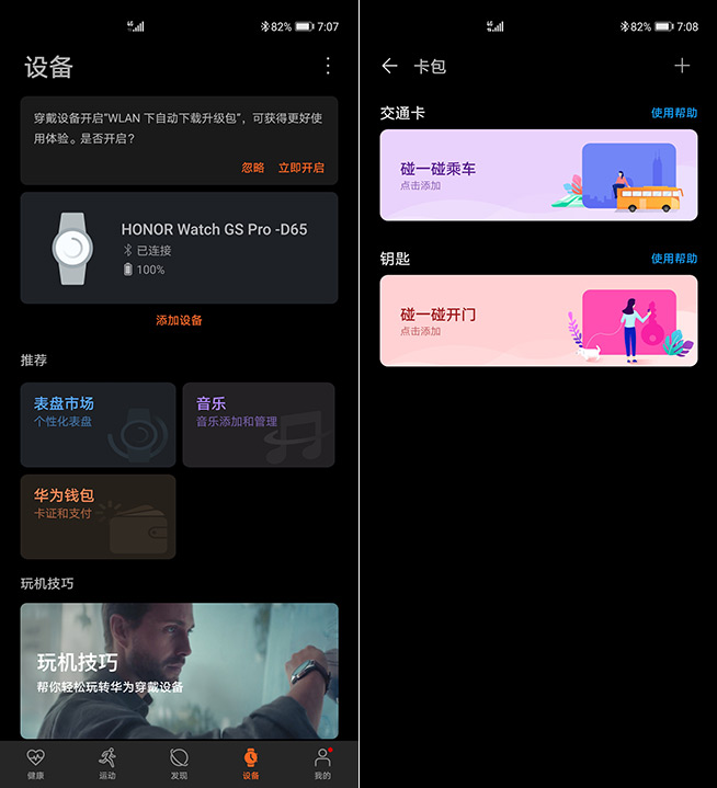 除了是運(yùn)動的利器之外,榮耀手表GS Pro在日常生活中也是全能小幫手,集NFC交通卡/門禁卡、支付寶快捷支付、本地音樂播放(連接藍(lán)牙耳機(jī))、智慧生活聯(lián)動體驗、各種消息通知等日常服務(wù)于一身,數(shù)百款海量精美表盤則能顯著提升手表的可玩性及多變個性。