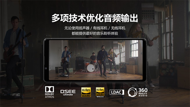 除了支持高解析力音頻及無(wú)線(xiàn)高解析力音頻外,Xperia 1 II更引入了DSEE Ultimate音頻技術(shù),通過(guò)AI技術(shù)實(shí)時(shí)提升數(shù)字音頻品質(zhì)至接近高解析力水準(zhǔn),帶來(lái)更豐富而飽滿(mǎn)的聆聽(tīng)體驗(yàn),此功能同時(shí)支持有線(xiàn)或無(wú)線(xiàn)耳機(jī)播放內(nèi)置或流媒體音樂(lè)。