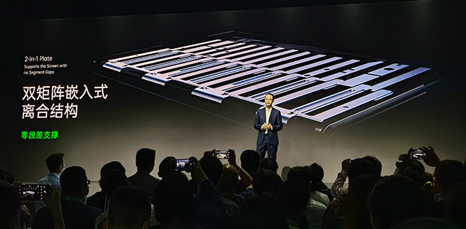 據(jù)悉,OPPO X 2021布局了多達122項專利,其中轉軸相關的核心專利就有12項目,包括自研的Roll Motor動力總成、雙矩陣嵌入式離合結構和Warp Track屏幕動態(tài)區(qū)骨架疊層等。為了實現(xiàn)全新形態(tài),OPPO X 2021卷軸屏概念機重新設計了堆疊、天線、電池方案。