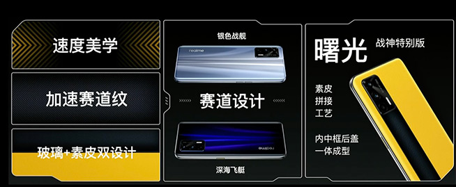 一如之前realme的承諾,realme真我GT果然將整機重量控制在200g以內(nèi),6.43英寸的屏幕尺寸不大也不小,186g的手機上手手感剛剛好,值得一提的是手機底部還保留了3.5mm耳機接口。該機提供了三款配色選擇,其中一款為新款素皮材質(zhì),命名為“戰(zhàn)神真我GT特別版”,擁有12GB+256GB配置,特別的設(shè)計用于致敬GT賽車精神。