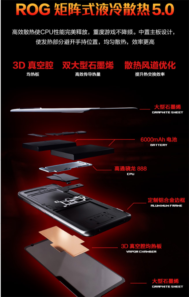 升級(jí)的矩陣式液冷散熱5.0為內(nèi)部高能硬件提供了穩(wěn)定的運(yùn)行環(huán)境。騰訊ROG游戲手機(jī)5系列將CPU置于手機(jī)正中央,真空腔均溫板和雙石墨烯片覆蓋,通過多方位的均勻散熱,效率更高,手感更舒適;而酷冷風(fēng)扇5也全面升級(jí),入風(fēng)與出風(fēng)呈一條直線,風(fēng)流高效匯聚于CPU正上方,能有效降低背蓋溫度約15°C, CPU降溫約10°C。從而能夠流暢運(yùn)行大型3D游戲,持續(xù)穩(wěn)定地釋放性能,不卡頓、不掉幀。