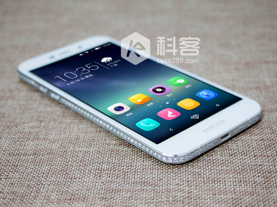 第二代的SUGAR時尚手機(jī)被命名為SUGAR 2。與上一代對比,屏幕尺寸也擴(kuò)大到了5.2英寸,但是依然阻擋不了設(shè)計師BlingBling的少女心,這代產(chǎn)品的后蓋從琉璃面板換成了在燈光下有著閃閃發(fā)亮四葉草圖案的塑料材質(zhì),周圍那一圈與施華洛世奇合力打造的耀眼的人工寶石妥妥的被延續(xù)了下來,甚至電源和兩個音量鍵也都鑲上了人工寶石。包裹著寶石的是一圈金屬邊框,后蓋可拆卸但不可以換電池,機(jī)器內(nèi)部做工還挺精致。攝像頭的外圈顏色和機(jī)身顏色一樣,有點(diǎn)像三星的設(shè)計風(fēng)格。
