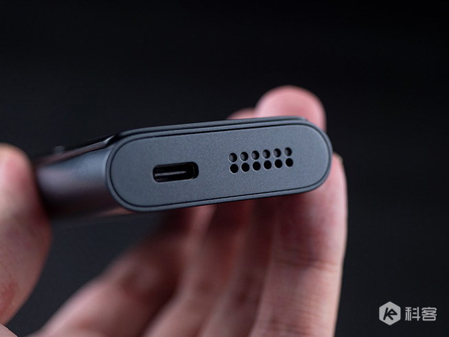 屏幕與主操控按鍵分別占據(jù)訊飛智能錄音筆SR302正面的大部分空間,導(dǎo)航鍵采用精雕手感咬紋設(shè)計,兼顧出色手感與耐磨性。產(chǎn)品左右兩側(cè)分別是音量鍵與電源鍵,底部有多孔揚聲器和USB Type-C接口。?