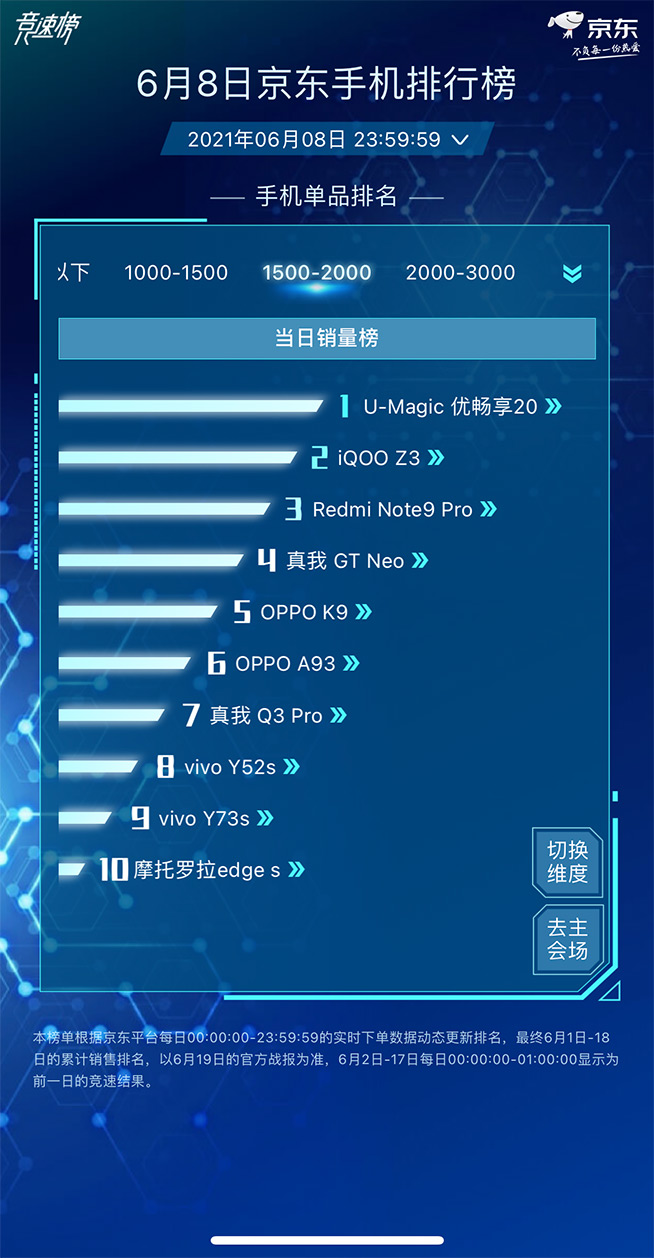 京東618提前進(jìn)入白熱化!U-MAGIC優(yōu)暢享20拿下手機(jī)類單日銷售冠軍
