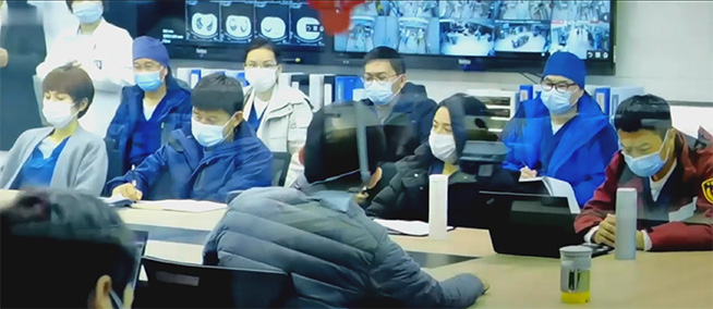 而在電影52分鐘左右,中央指導(dǎo)組專家組進(jìn)入武漢布控工作并組織會(huì)議,還有86分鐘左右,張涵予飾演的院長張定宇開會(huì)探討提高對病毒認(rèn)知的相關(guān)話題,上述兩段劇情可以看到部分醫(yī)生和專家使用的ThinkPad T15出鏡。