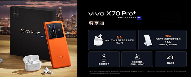 至于X70 Pro+,起售價比上代機型漲幅超過500元,8GB+256GB版為5499元、12GB+256GB為5999元,12GB+512GB達到6999元。需要提醒的是,vivo X70 Pro+還有一個尊享版,同樣是6999元,在12GB+512GB的基礎上標配價值499元的vivo TWS 2耳機,限量贈送329元的50W無線閃充立式充電器,還享有2年超長保修、專屬管家服務以及1V1專屬客服服務。如果不差錢就要頂配的話,顯然尊享版比12GB+512GB更值得擁有。添加科客公眾號kekebat,獲取更多精彩資訊。