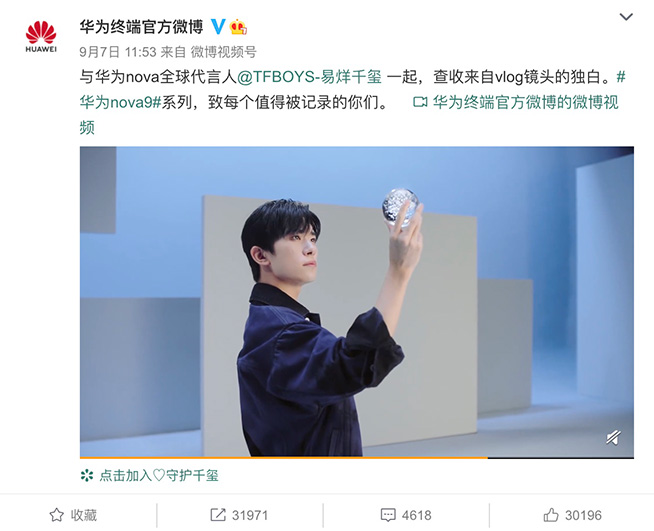 2018年深受年輕人喜愛的演員易烊千璽正式出任華為nova全球代言人,由首款代言機(jī)型nova3到即將登場的nova9系列,不知不覺這已是華為與易烊千璽聯(lián)手為消費(fèi)者奉獻(xiàn)的第7代產(chǎn)品。回顧此前的6代機(jī)型,事實(shí)證明皆為爆款,在市場上叫好又叫座,nova品牌“新潮派”的品牌形象不斷深入人心。