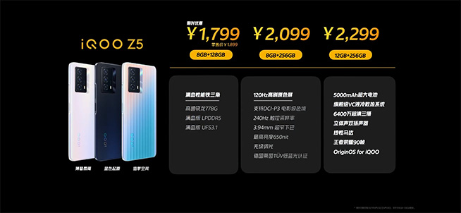 千元“滿血”續(xù)航王iQOO Z5發(fā)布,首銷1799元起