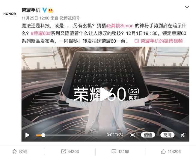 11月25日榮耀官方公布首支龔俊與榮耀60系列同框視頻,里面龔俊的幾個手勢吸引了眾多網友的圍觀,官方也拋出“神秘手勢”的關鍵字制造懸念,那到底有何玄機呢??