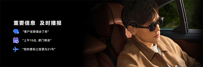 基于HarmonyOS強(qiáng)大的分布式能力,華為智能眼鏡擁有全天候智慧播報(bào)功能,手機(jī)端或其他連接設(shè)備推送的信息能夠及時(shí)通過語音通知。