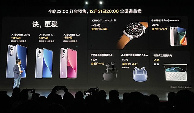 12月28日晚,小米正式發(fā)布小米12、小米12Pro以及小米12X,定價3199元起,將于12月31日晚全渠道開售。