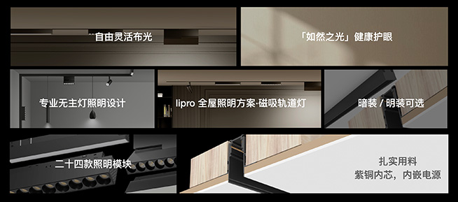 除了貼心的照明設(shè)計(jì)服務(wù)外,lipro 照明產(chǎn)品也持續(xù)推新。lipro 率先把「如然之光」和磁吸軌道燈融合,讓磁吸軌道燈也擁有了Ra97高顯色,RG0低藍(lán)光,無(wú)可視頻閃的高品質(zhì)光源。隨著 lipro 獨(dú)有的「如然之光」走入無(wú)主燈照明的領(lǐng)域,健康護(hù)眼必將成為用戶考慮無(wú)主燈照明的必要條件。
