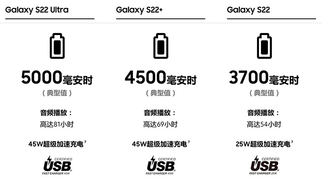 S22和S22+的主要差異還體現(xiàn)在重量、電池容量、快充配置方面,S22僅重167g,不過電池只有3700mAh,支持25W快充。至于S22+重量為195g,電池4500mAh,最高支持45W快充。需要指出的是,此次S22也升級為玻璃材質(zhì)+啞光質(zhì)感涂層的后蓋,質(zhì)感得以提升。