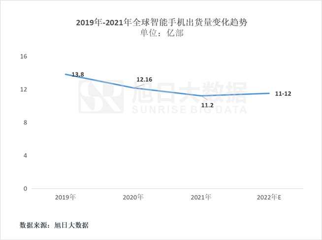 2020年,全球手機(jī)出貨量為15.2億臺(tái),其中智能手機(jī)出貨量為12.16億臺(tái)。2021年,全球手機(jī)出貨量為13.7億臺(tái),同比下降10%;其中智能手機(jī)出貨量為11.2億臺(tái),同比下滑8%。