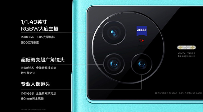 vivo X80 Pro配備單反級超低色散高透玻璃鏡片,加上蔡司T*鍍膜的加持,能夠獲得更純凈的畫質(zhì)。vivo X80 Pro采用蔡司四攝定制模組,包括全新1/1.3英寸5000萬像素三星GNV超大底傳感器、4800萬像素超廣角鏡頭、800萬像素潛望式長焦鏡頭以及1200萬像素索尼IMX663人像鏡頭。按照先前的消息,三星GNV是三星GN1的改良款,提升幅度并不大。