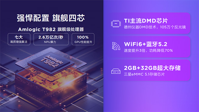 除音畫質表現(xiàn)優(yōu)異外,小新520智能投影的性能同樣不能小覷,其搭載的旗艦級投影同款處理器Amlogic T982,擁有極速算力和先進的軟件算法,帶來絲滑暢快的性能。TOF激光急速對焦、全自動梯形校正等智慧深感視覺系統(tǒng)則能為休閑娛樂時刻帶來智能便捷的體驗,是一款優(yōu)秀的居家觀影神器。