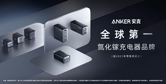 2018年,Anker首次將氮化鎵材料應(yīng)用在充電器上,推出了行業(yè)第一個氮化鎵充電器 ,拉開了行業(yè)氮化鎵充電器風潮的序幕。Anker精準洞察消費者的需求,持續(xù)研發(fā)創(chuàng)新,不斷帶來了高品質(zhì)的充電新品,并獲得消費者的認可?;诟ト羲固厣忱?021年全球氮化鎵充電器行業(yè)獨立市場研究做出的確認,Anker2021年氮化鎵充電器零售額全球第一,成為了全球第一氮化鎵充電器品牌。