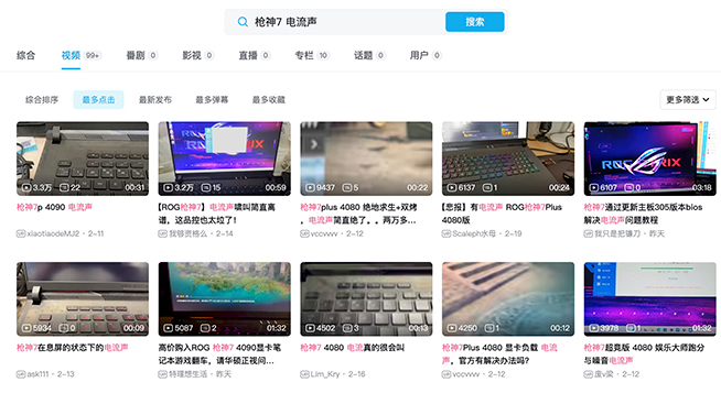 華碩ROG槍神7系列出師不利:電流聲勸退部分消費(fèi)者,有用戶稱“祖?zhèn)鳌?/></p><p>  讓人始料不及的是,有幸嘗鮮到新機(jī)的部分用戶也高興不起來,皆因他們到手的ROG槍神7系列均出現(xiàn)了電流聲過大的問題。在B站搜索“槍神7 電流聲”的關(guān)鍵字,<a href=科客君發(fā)現(xiàn)相關(guān)視頻的數(shù)量已達(dá)99+。
