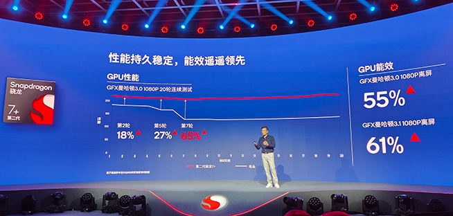 基于高性能持久輸出的表現(xiàn),馬曉民表示,這樣的GPU能效表現(xiàn),說一句驍龍遙遙領(lǐng)先不過分吧?據(jù)科客記者了解,此前驍龍產(chǎn)品線并無“第一代驍龍7+”,這次直接出第二代,也意味著新平臺的提升幅度堪稱越級,強(qiáng)到越級!