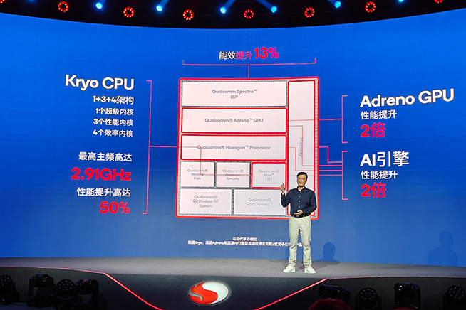 第二代驍龍7+的Kryo CPU為1+3+4的架構(gòu),X2超大核的最高主頻達(dá)到2.91GHz,性能提升50%。大核及中核(能效核)的最高頻率分別為2.49GHz和1.8GHz。而GPU和AI的性能均提升2倍,整體能效提升13%。