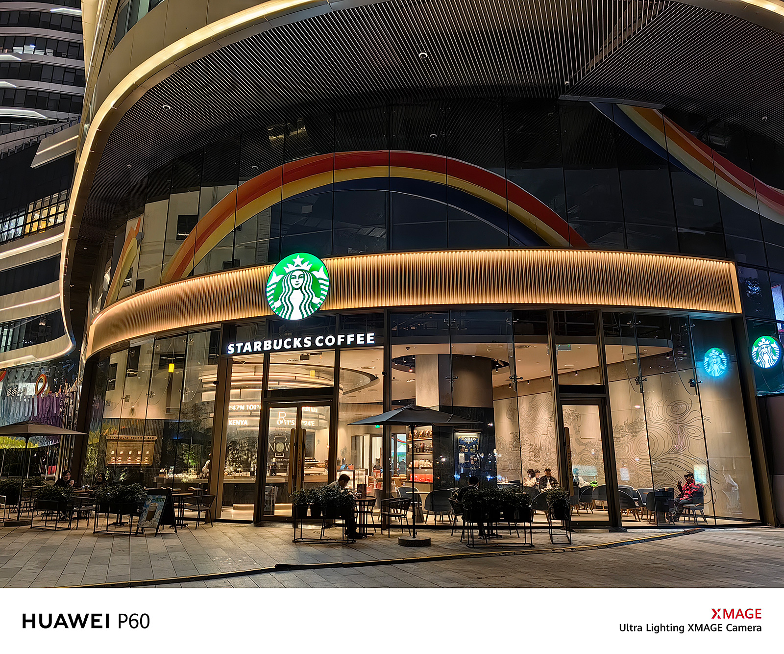 下面這張樣張中,咖啡店的LOGO與旁邊燈帶的細(xì)節(jié)均得到清晰還原,店內(nèi)燈箱英文基本沒有過曝,可見華為影像XMAGE的算法已經(jīng)爐火純青。