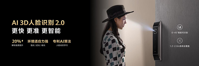 華為智能門(mén)鎖系列提供豐富靈活的解鎖方式可選,其中華為智能門(mén)鎖Pro最為完備,除了基礎(chǔ)的密碼、NFC加密卡片、部分華為手機(jī)和華為手表解鎖之外,也支持高安全系數(shù)的生物解鎖。其中非常方便的人臉解鎖已升級(jí)至AI 3D人臉識(shí)別2.0,擁有更高安全性和更迅速的識(shí)別解鎖體驗(yàn)。