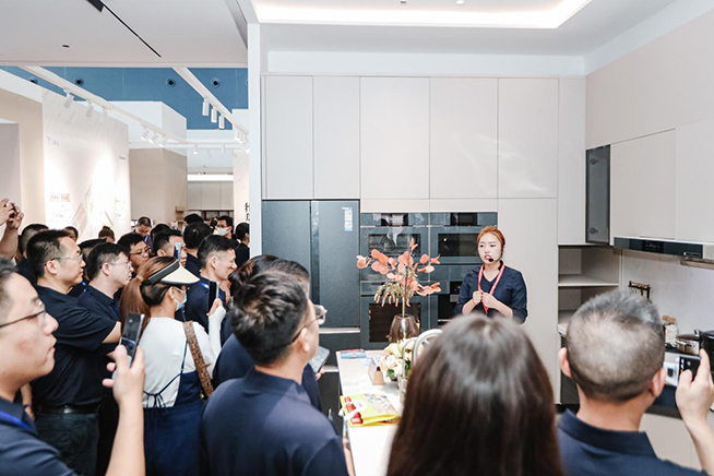 除了一居室的智慧家樣板間,用戶還可以在黑曜廚房、光年廚房、星河黑巖板廚房的高端成套場(chǎng)景中,感受三翼鳥的個(gè)性化定制實(shí)力。比如現(xiàn)場(chǎng)展示的三翼鳥首套以白色為主調(diào)的廚房——光年套系廚房,不僅采用了統(tǒng)一的云巖白配色,在空間上也實(shí)現(xiàn)了全套嵌入式設(shè)計(jì)。在配套行業(yè)領(lǐng)先的烹飪科技下,無論中式和西式烹飪都有專業(yè)體驗(yàn),且冰箱還能有效保鮮食材,并生成健康膳食營養(yǎng)方案,聯(lián)動(dòng)蒸烤箱實(shí)現(xiàn)一鍵烹飪。