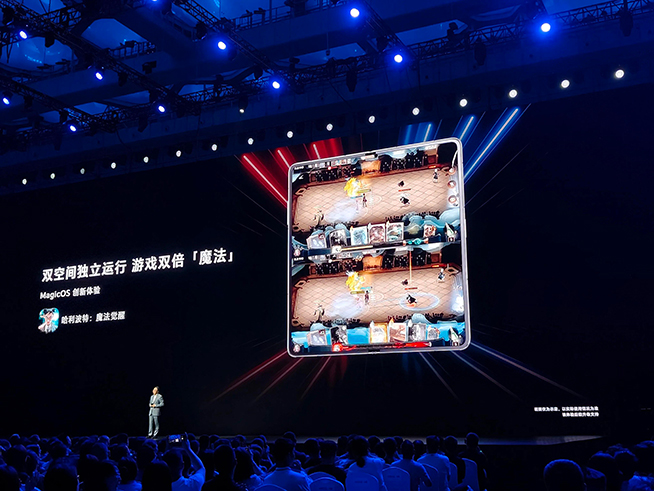 通過全新的平行空間,榮耀Magic V2還支持平行雙系統(tǒng),相比友商類似功能更給力的是,兩個(gè)系統(tǒng)允許同時(shí)運(yùn)行,意味著游戲雙開可以同時(shí)進(jìn)行,可玩性更進(jìn)一步。