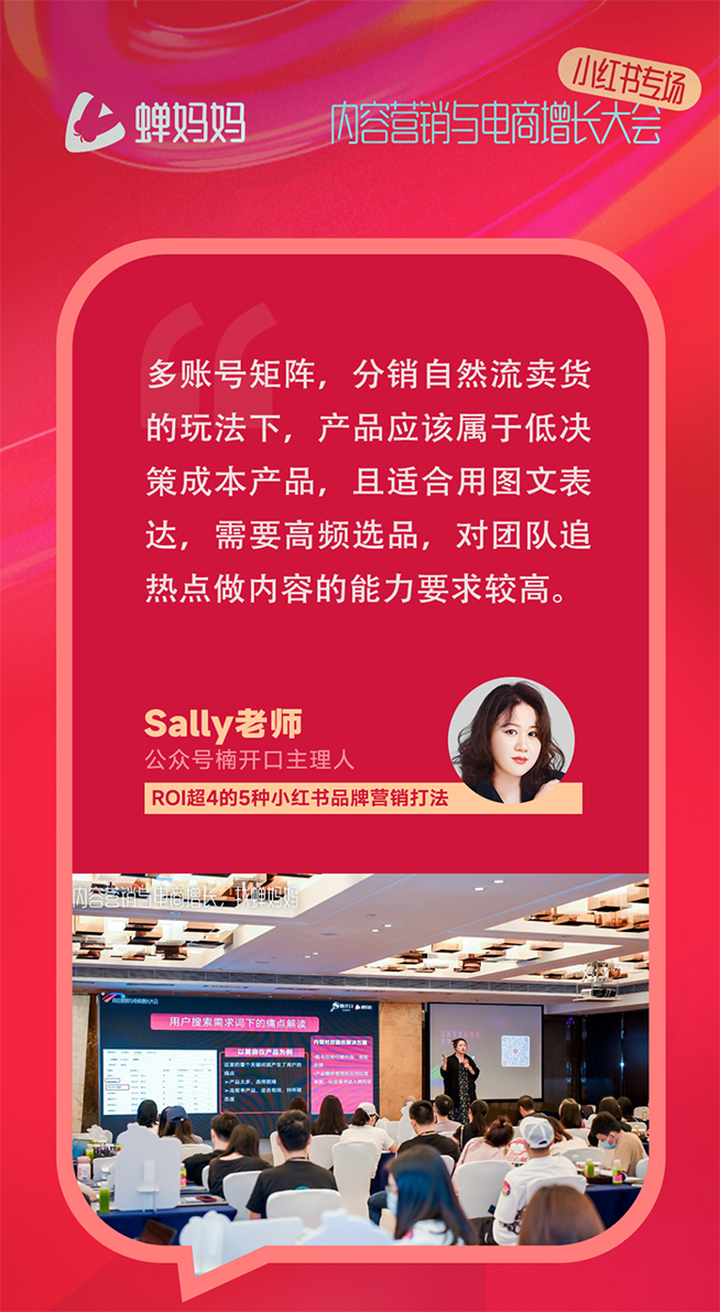 在小紅書專場中,分享了關(guān)于小紅書的營銷玩法,其中包括kol內(nèi)容爆文、排行榜內(nèi)容分發(fā),搶占品類用戶、優(yōu)質(zhì)內(nèi)容種草分發(fā),博取自然流量、多賬號矩陣,分銷自然流賣貨、企業(yè)號矩陣,精準(zhǔn)內(nèi)容引流私域賣貨等等。