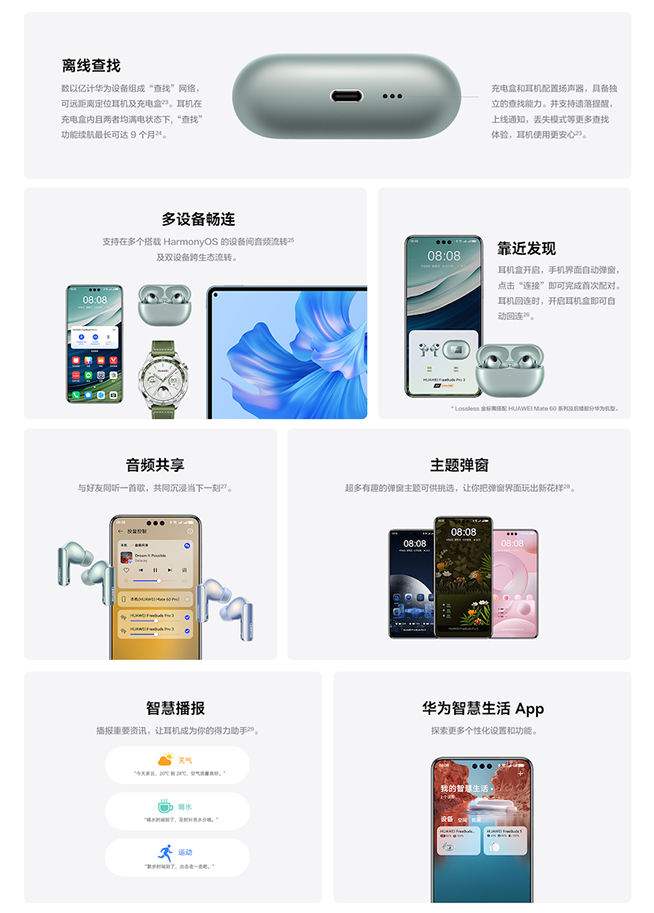 此次在新一代全場景智慧操作系統(tǒng)HarmonyOS 4賦能之下,華為FreeBuds Pro 3也有不少智慧新體驗(yàn)。比如耳機(jī)定位查找功能,新增離線查找黑科技,可獨(dú)立查找耳機(jī)和充電盒;耳機(jī)自動彈窗支持個(gè)性化設(shè)置,通過主題彈窗可玩出更多花樣;此外,多設(shè)備暢連、音頻共享、智慧播報(bào)等特色功能也更好用了。