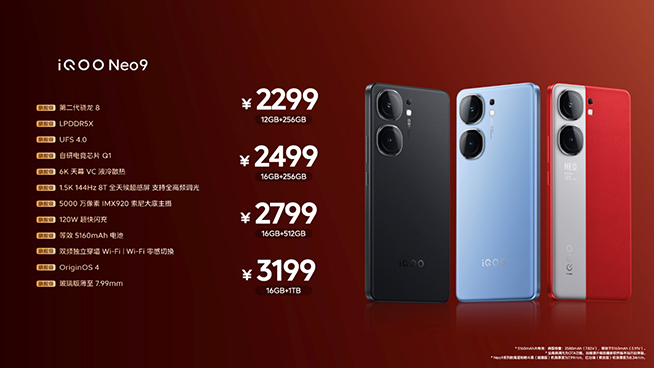 同檔性能之王,2299元起“雙芯戰(zhàn)神”iQOO Neo9系列發(fā)布