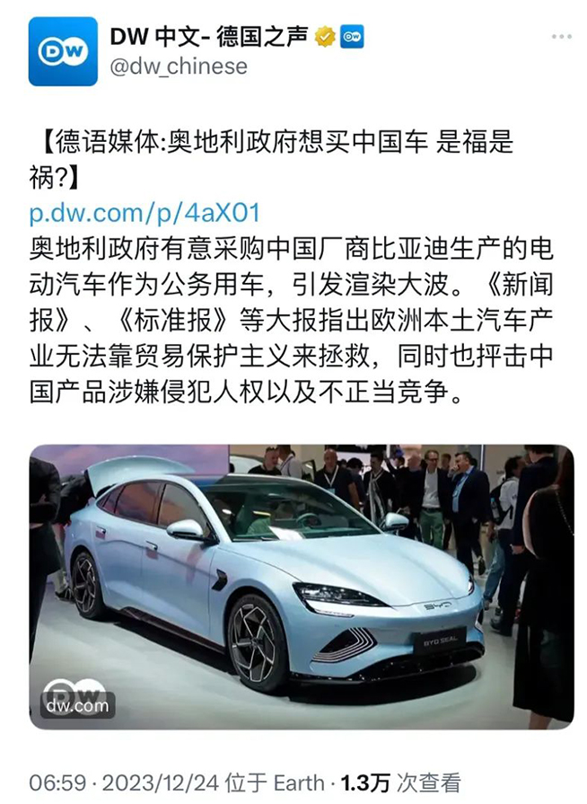 中國新能源汽車海外一路高歌,奧地利政府想買比亞迪車引發(fā)外媒熱議