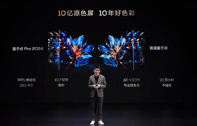 首先亮相的是QD-Mini LED電視TCL X11H,這是TCL的2024年度旗艦,實(shí)現(xiàn)了從畫質(zhì)到音質(zhì)再到體驗(yàn)的全面提升。關(guān)鍵的畫質(zhì)方面,從去年領(lǐng)先的5184背光分區(qū)躍升至14112背光分區(qū),擁有更精細(xì)的控光與更分明的層次顯示,成為全球率先量產(chǎn)的萬級分區(qū)Mini LED電視(百吋級),再次傲視全行業(yè)。