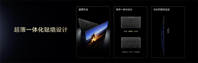 設計方面,得益于微距OD,Q10K Pro也擁有超薄一體化貼墻外觀設計,沒有“小書包”,優(yōu)雅纖薄,可以完美貼合墻壁。背部設計上,同樣使用了Mini LED星空紋理和引力星環(huán)重低音設計,美感十足,質感爆棚。