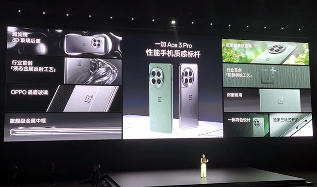 輪到C位的一加Ace3 Pro手機(jī)登場(chǎng),其罕見的提供三款不同質(zhì)感后蓋,對(duì)應(yīng)不同銀、綠、白三款配色,那個(gè)對(duì)外觀和質(zhì)感不將就的一加又回來了。其中銀色和綠色分別為玻璃與素皮工藝打造,而白色的超跑瓷典藏版為3D一體陶瓷后蓋,為此還專門開設(shè)了新產(chǎn)線,李杰豪言其質(zhì)感超越萬元旗艦機(jī)。