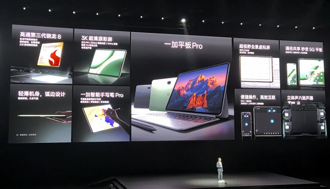 首先是一加平板Pro,是首款第三代驍龍8的平板、首發(fā)超視覺全景虛擬屏、首發(fā)原神2.1K超高畫質(zhì),多項(xiàng)性能指標(biāo)拉滿。對(duì)于這款新品,一加總裁李杰稱“可以說是安卓的平板之王”。