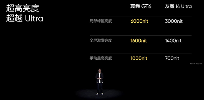 對于電競機(jī)型而言,屏幕效果也是重中之重。真我GT6采用6.78英寸1.5K京東方S1+柔性直屏,運(yùn)用8T LTPO技術(shù),不僅多項(xiàng)顯示參數(shù)達(dá)到旗艦水準(zhǔn),還重點(diǎn)強(qiáng)化了護(hù)眼和亮度的表現(xiàn),號稱“直屏滅霸”。這塊屏幕局部峰值亮度高達(dá)6000nit(需在開發(fā)者模式下啟用),手動亮度和全局激發(fā)亮度也分別達(dá)到1000nit和1600nit,實(shí)測在烈日下將真我GT6屏幕亮度拉滿,真的可以看清屏幕內(nèi)容,戶外還是挺實(shí)用的。