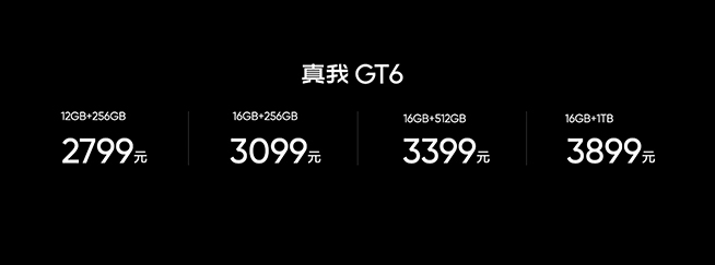 真我GT6共有四款容量版本,相比上代機(jī)型砍掉了24GB內(nèi)存版本,12GB+256GB為2799元,16GB+512GB為3099元,16GB+512GB為3399元,16GB+1TB為3899元,將于7月15日正式上市,首銷贈送4年電池保和4年免費(fèi)貼膜。添加科客公眾號kekebat,獲取更多精彩資訊。