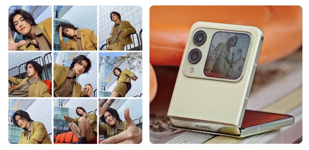 得益于折疊自由懸停和趣方屏的設(shè)計(jì),華為nova Flip是發(fā)揮影像創(chuàng)意的利器。只需雙擊音量下鍵,即可快速啟動(dòng)相機(jī),直接使用高品質(zhì)的后置5000萬(wàn)像素超感知大底主攝自拍,且有華為達(dá)芬奇人像引擎2.0加持,氛圍感人像隨手可得,自拍及合拍效果自然是杠杠的。值得一提的是,華為nova Flip不僅有常規(guī)的定時(shí)拍攝功能,還新增間隔定時(shí)9連拍的設(shè)置,方便玩家各種凹造型,無(wú)需借助工具外設(shè)也能獨(dú)自拍個(gè)盡興。