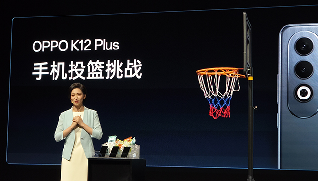之前OPPO K12超強(qiáng)的品質(zhì)給不少網(wǎng)友留下深刻印象,尤其是當(dāng)時(shí)OPPO產(chǎn)品經(jīng)理Monica用高跟鞋踩手機(jī)已成為手機(jī)圈的名場(chǎng)面之一。OPPO K12 Plus發(fā)布會(huì)現(xiàn)場(chǎng),Monica又帶來(lái)新花樣折磨手機(jī),直接示范用手機(jī)投籃,幾臺(tái)OPPO K12 Plus被扔多次后外觀和功能依然保持正常,超抗摔金剛石架構(gòu)果然厲害。