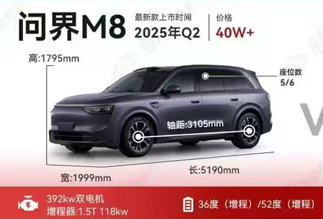 8項全能問界M8四月上市!預(yù)訂價36.8萬元起,1小時小訂超7500臺