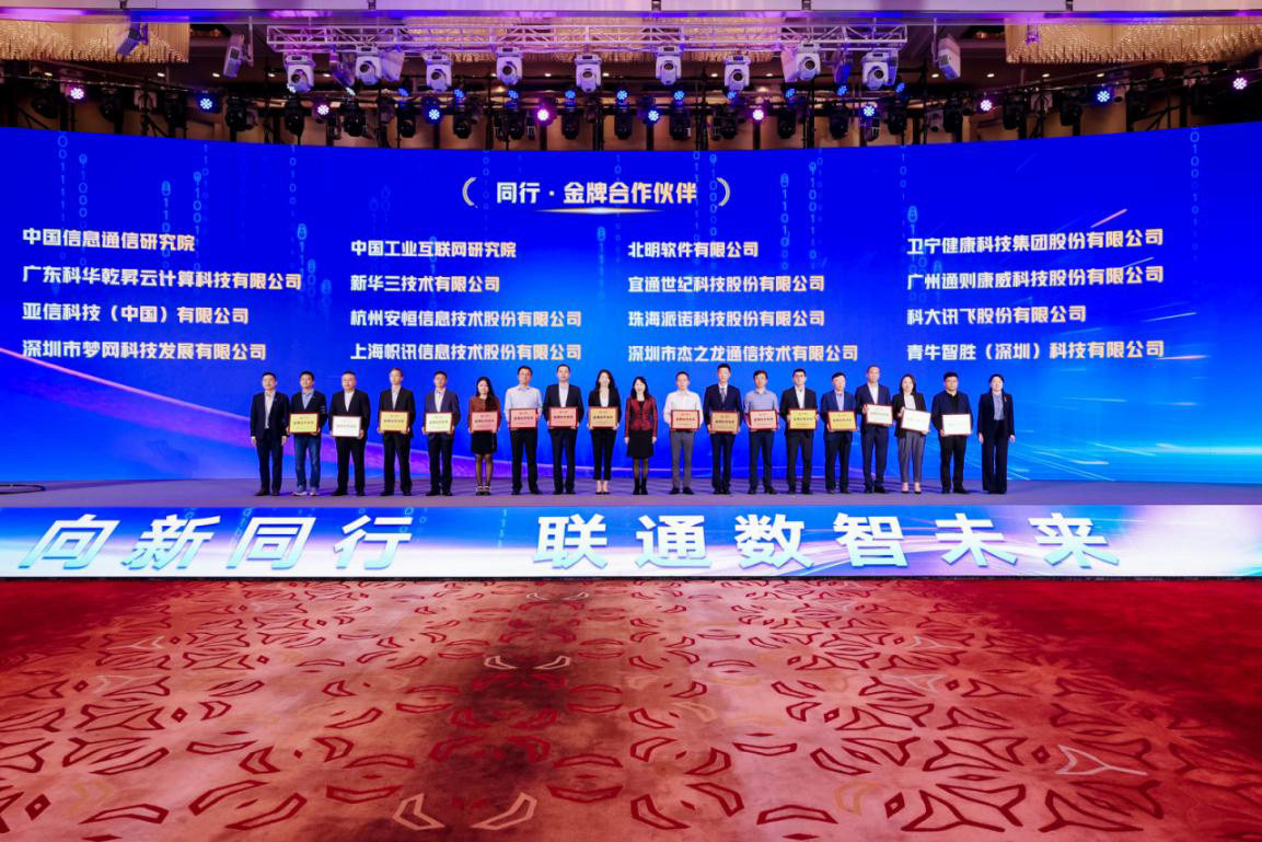 廣東聯(lián)通宣布圍繞算網(wǎng)數(shù)智、聯(lián)網(wǎng)通信、科技數(shù)智三大領(lǐng)域打造“同行 共贏 智享”合作伙伴體系,并為金牌合作伙伴進行頒獎。