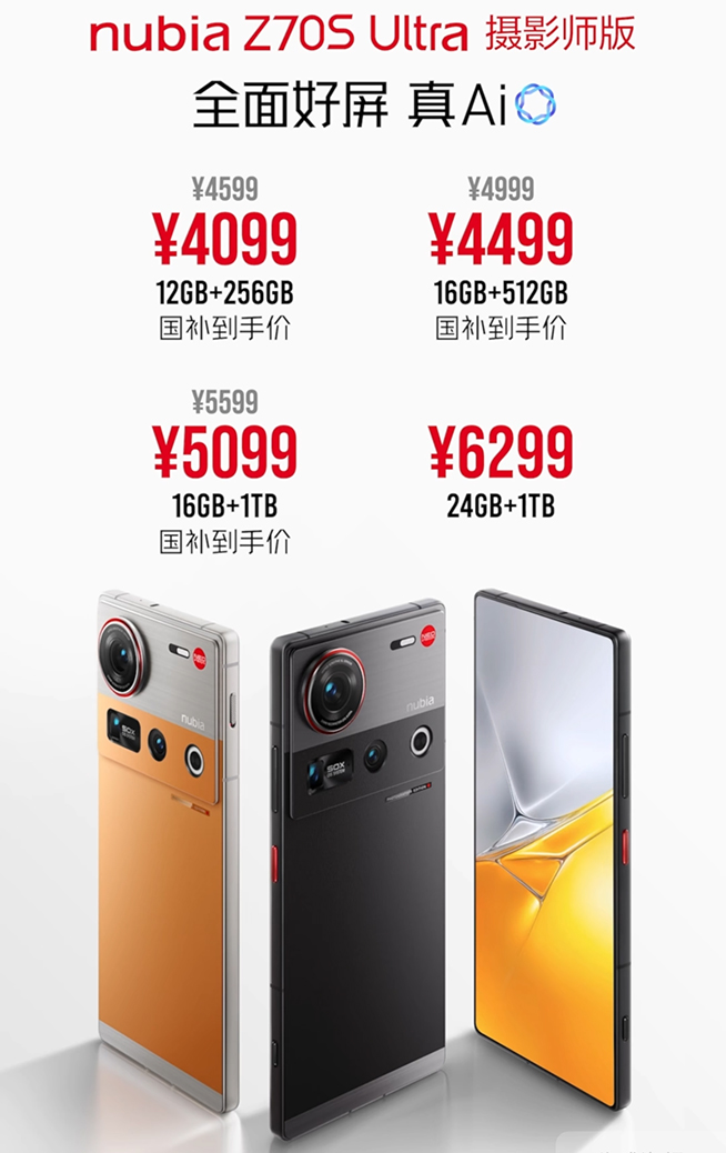 4月28日,努比亞手機(jī)正式推出旗艦新品——努比亞Z70S Ultra攝影師版,號(hào)稱“最懂影像”,起售價(jià)4599元,共有四款容量配置,價(jià)格完全與去年推出的Z70 Ultra一致。