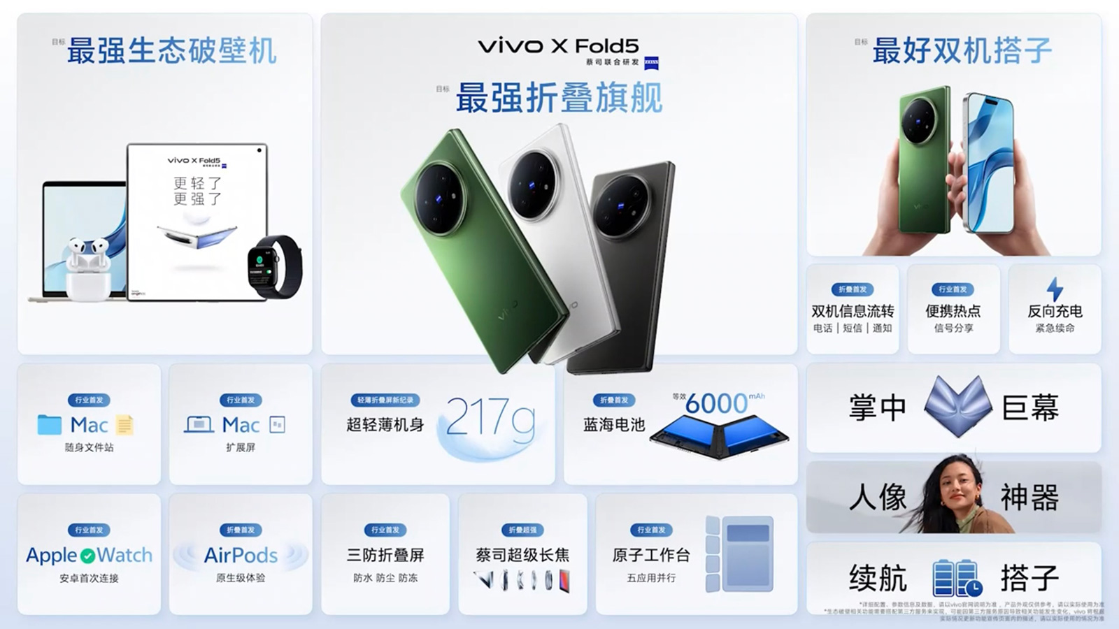 當(dāng)然,vivo大折疊要做更輕也不是不可以,但那會(huì)犧牲電池續(xù)航或其它方面的配置,權(quán)衡過后vivo選擇“點(diǎn)到即止”,X Fold5更輕的前提下,藍(lán)海電池容量增大至6000mAh,長(zhǎng)焦升級(jí)為索尼IMX882潛望式長(zhǎng)焦,并帶來防水防塵防凍的三防特性,都是折疊屏用戶很在意的產(chǎn)品能力。