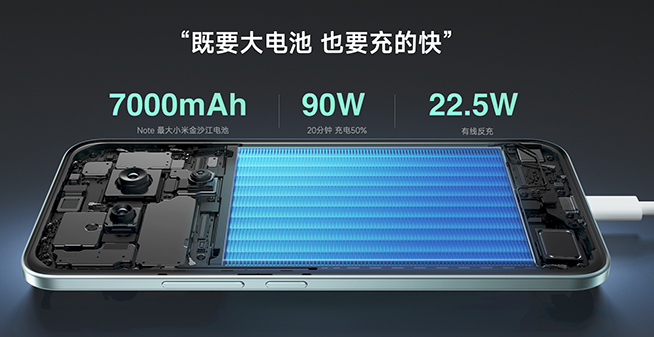 黃金續(xù)航組合,7000mAh電量 + 90W快充 + 22.5W反充