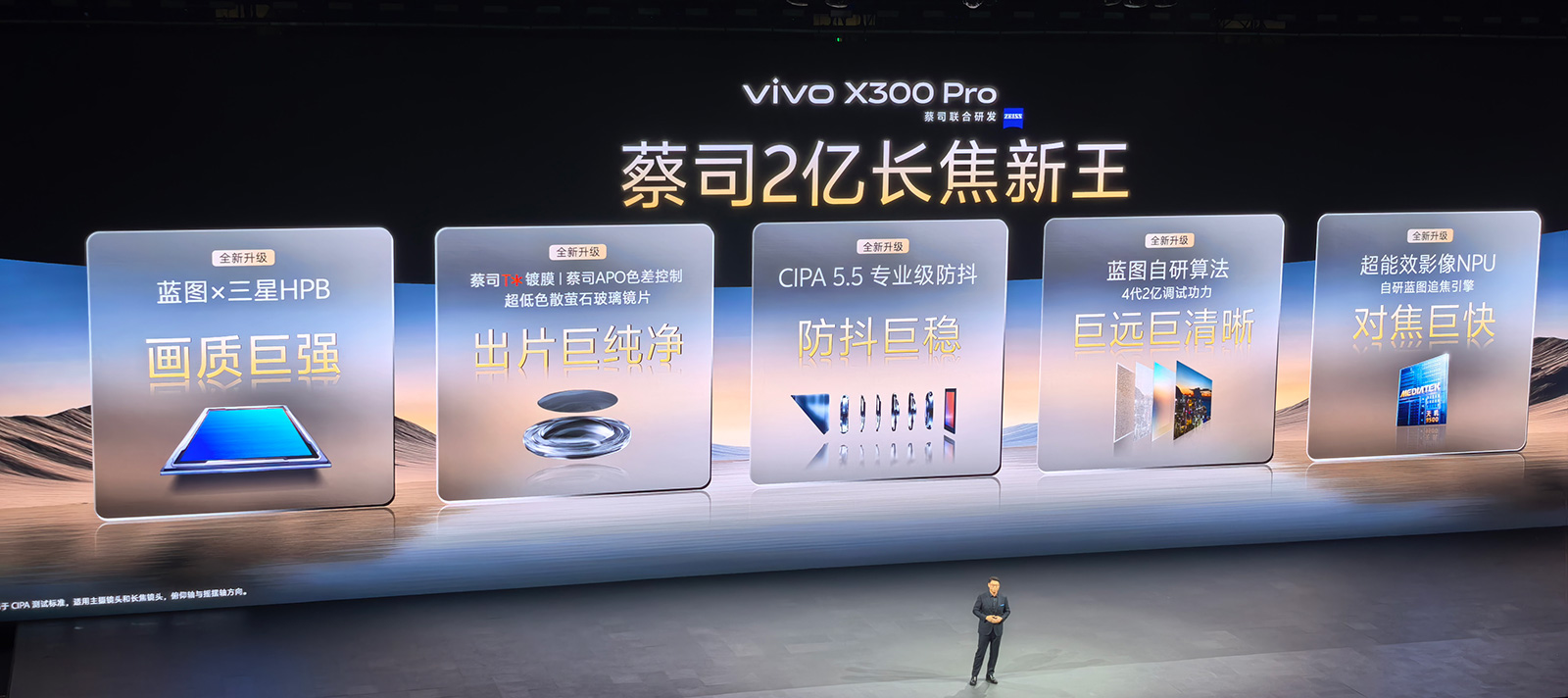 值得一提的是,vivo X300系列發(fā)布會(huì)的視頻直播是采用vivo X300 Pro呈現(xiàn)的,現(xiàn)場(chǎng)使用10臺(tái)vivo X300 Pro進(jìn)行全程錄制和直播。將如此盛大的發(fā)布會(huì)交由手機(jī)攝影完成,藍(lán)廠很酷很大膽,足以看出vivo X300 Pro的實(shí)力與信心。
